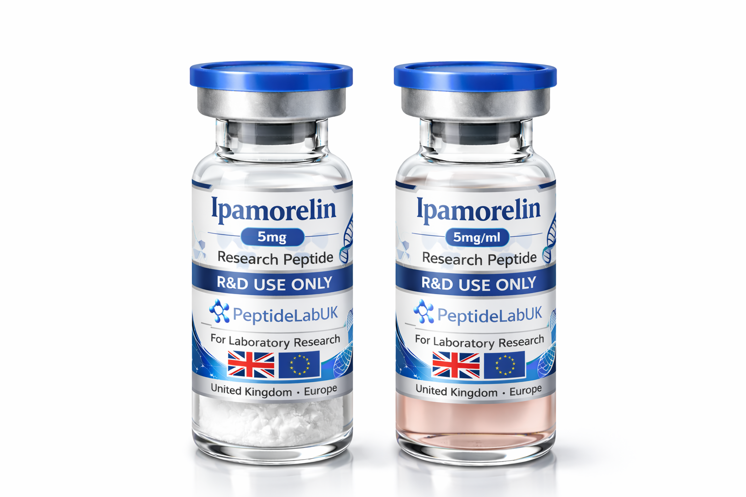 At PeptideLabUK.co.uk, Ipamorelin 5mg is available in two formats: