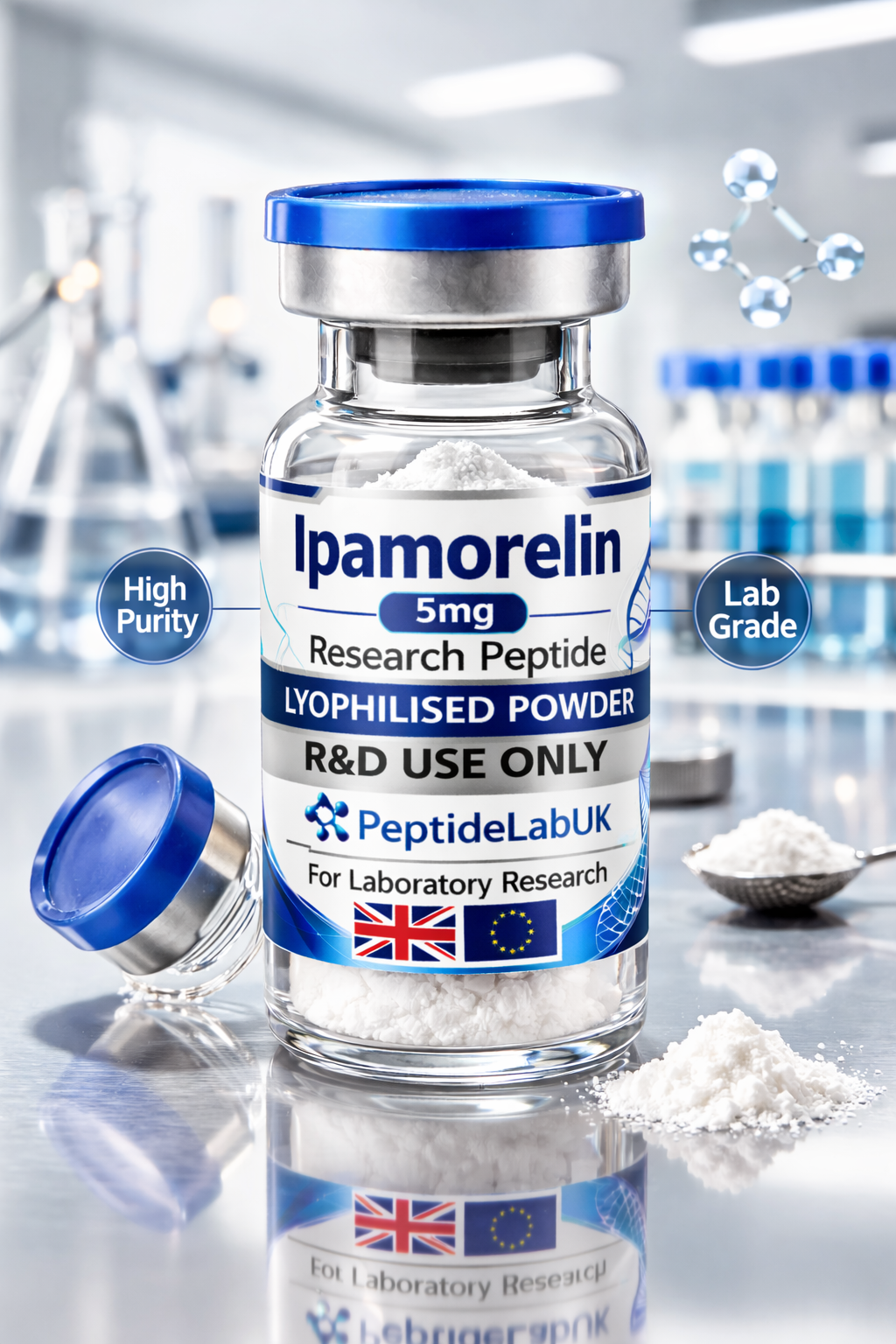 Lyophilisation preserves structural integrity by removing moisture prior to reconstitution. Ipamorelin 5mg Research Peptide UK