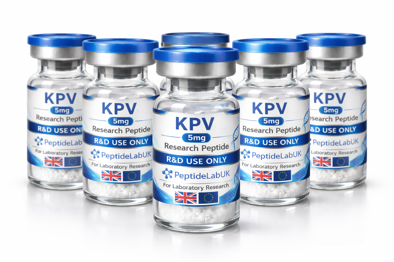 At PeptideLabUK.co.uk, KPV 5mg is supplied exclusively as a lyophilised powder in sterile glass vial format, ensuring peptide integrity before laboratory preparation. Distribution is limited to research professionals and institutions within the United Kingdom and approved European countries.