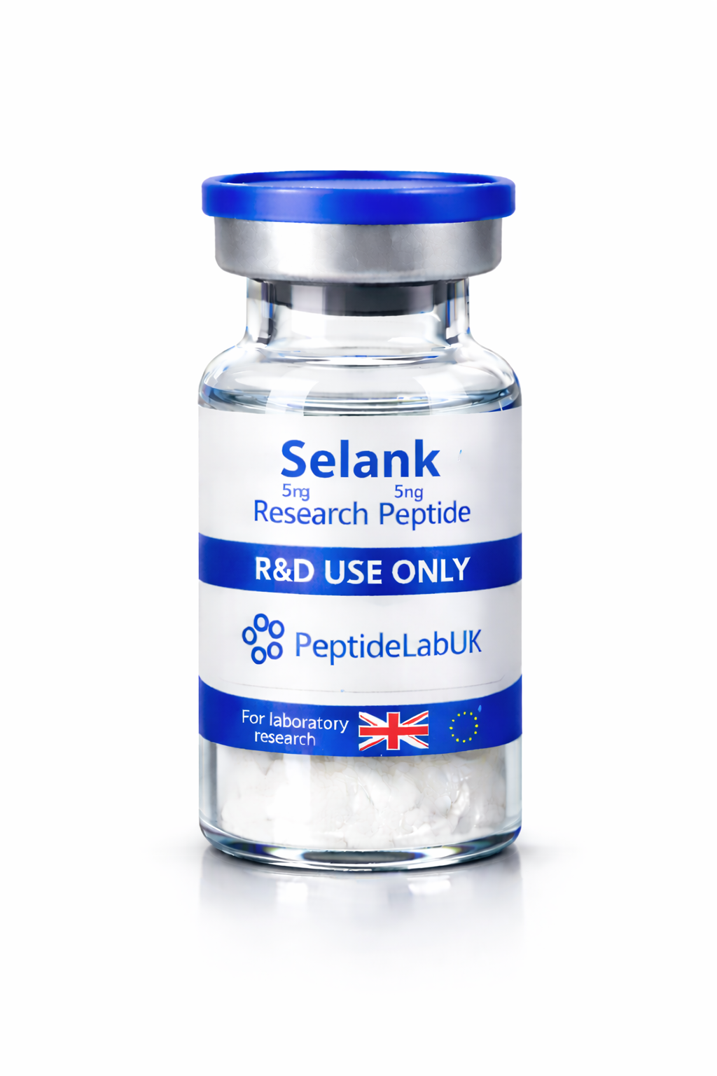 At PeptideLabUK.co.uk, Selank 5mg is supplied exclusively as a lyophilised powder in a sterile glass vial, ensuring maximum peptide integrity prior to laboratory reconstitution. Distribution is strictly limited to the United Kingdom and approved European research institutions.